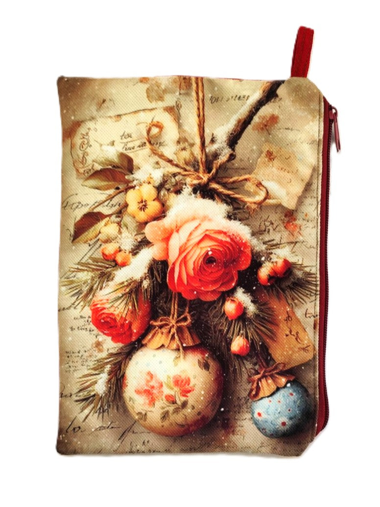 Очарователен несесер с мотив на коледна играчка, обвита в снежна зимна атмосфера. Дизайнът напомня малка коледна история, изпълнена с уют, магия и празнично настроение. Практичен, стилен и подходящ за всякакви нужди – ученика, козметика или дребни принадлежности. Идеален за подарък през празничния сезон.
