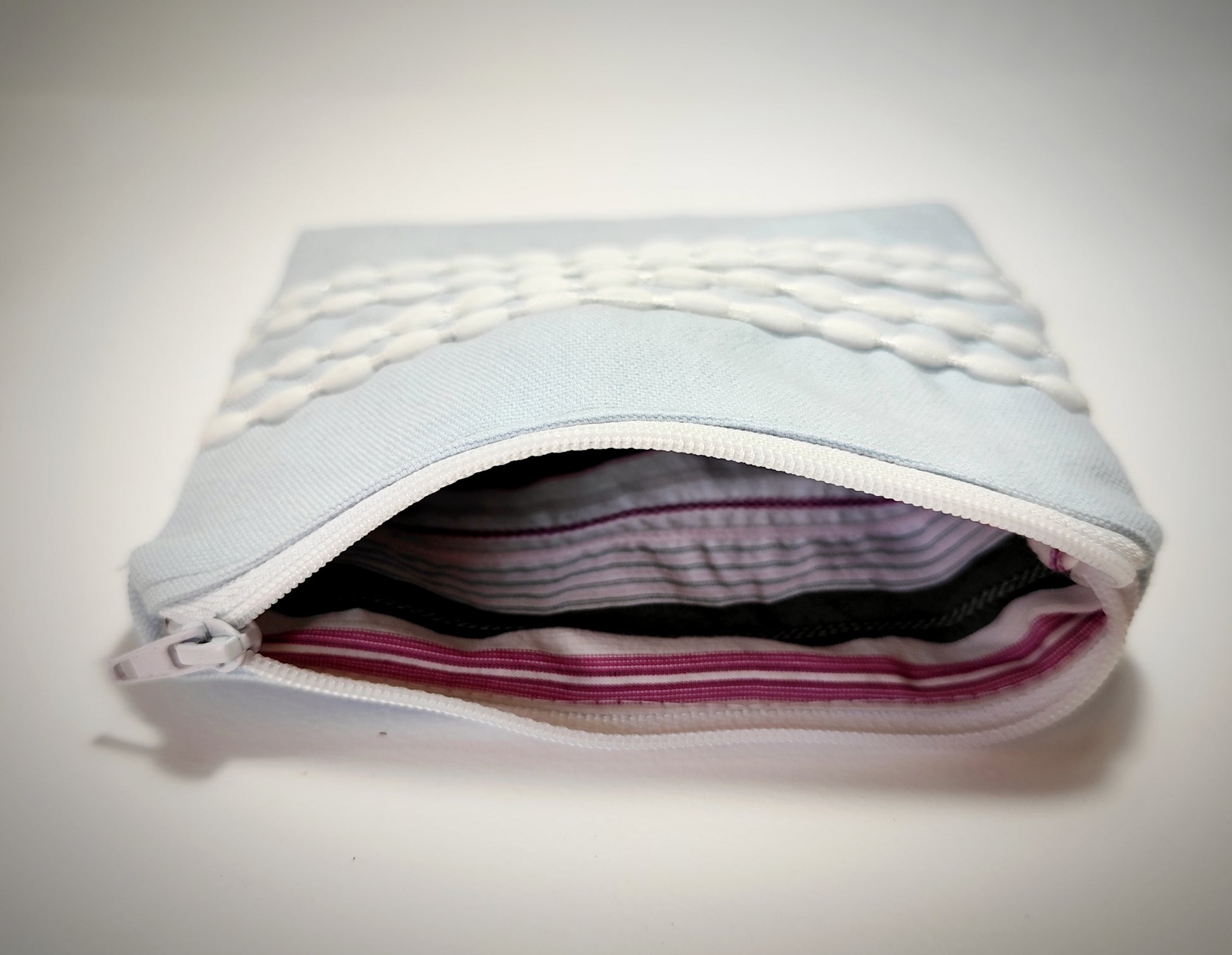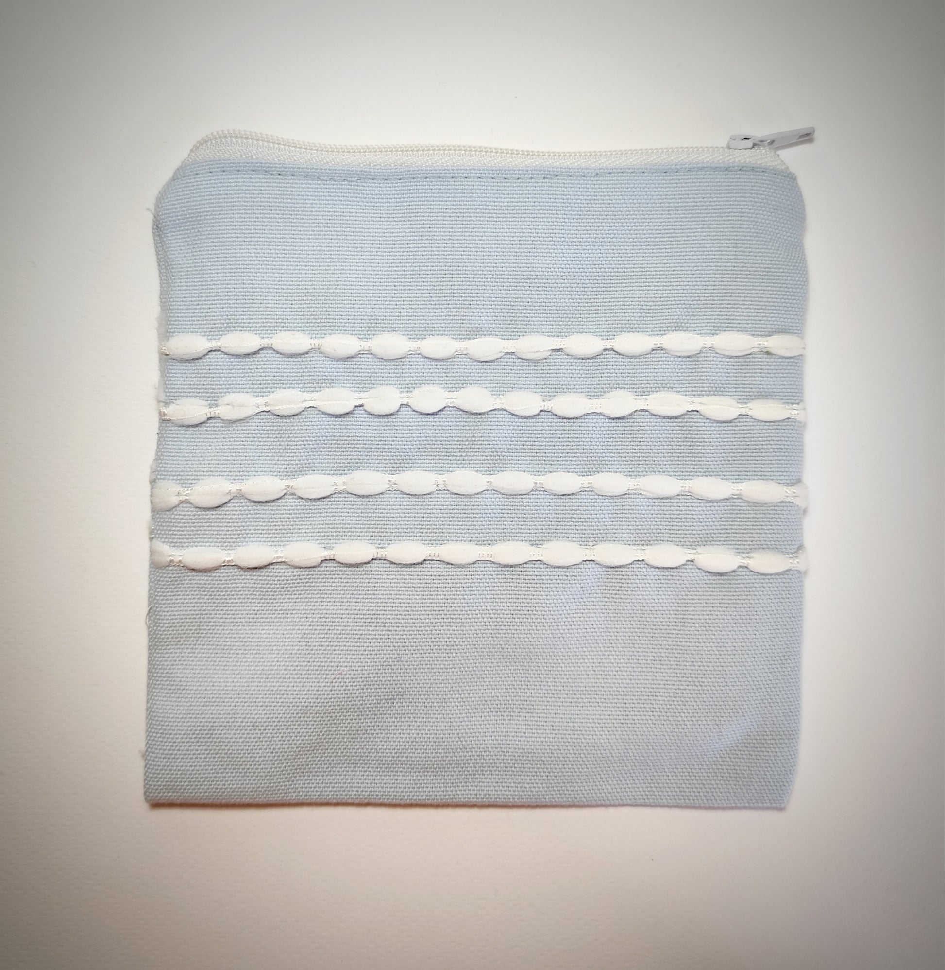 Портмоне от светъл деним,украсено със мек помпонен шнур.Голям обем и дълбочина,за всички ваши нужди. Размери16/16